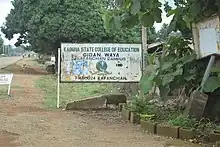 The Kaduna State College of Education is a state government higher education institution located in Gidan Waya, Kafanchan, Kaduna State, Nigeria.[1] It is affiliated to Ahmadu Bello University for its degree programmes. The current Provost is Alexander Kure.[2]