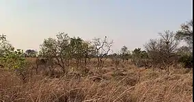 Most of the park is covered in miombo woodlands, which are open semi-deciduous forests of trees in the genera Brachystegia, Julbernardia and Isoberlinia, adapted to periodic wildfires. These woodlands have a few small dambos (grasslands which become marshy in the rainy season) interspersed among them. Large termite mounds are found in the forests, and these host their own particular evergreen floras, notably the candelabra tree (Euphorbia ingens), and the jackalberry (Diospyros mespiliformis). Large and small open plains are found throughout the park, often dotted with small termite mounds. Evergreen forests of teak and mopane occur in the south and centre. The Kafue River eventually flows into the man-made Lake Itezhi-tezhi, forming a reservoir partially within the park.[1] An important aquatic plant is the grass Vossia cuspidata, which forms free-floating mats in the river. Aeschynomene elaphroxylon is a problematic weed near Lake Itezhi-tezhi.[5]