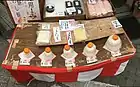 Several sizes and prices of kagami mochi in Tokyo.Moving around a traditionally ornamented kagami mochi