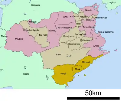 - March 31, 2006: The towns of Kainan, Kaifu and Shishikui merged to form the new town of Kaiyō. On the same date, the towns of Hiwasa and Yuki merged to form the new town of Minami.