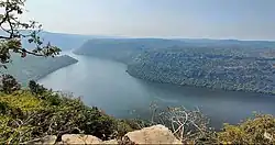 Kaimur district occupies an area of 3,362 square kilometres (1,298 sq mi),[5] comparatively equivalent to Russia's Vaygach Island.[6] Geographically, the district can be divided into two parts viz. (i) Hilly area and (ii) Plain area. The hilly area is Kaimur plateau (also known as Rohtas plateau). The plain area on the western side is flanked by the rivers Karmanasa and the Durgavati. The Kudra river lies on it eastern side. The district of Buxar of Bihar State and the district of Ghazipur of U.P. State bound it on the North. On the south is the district of Rohtas of Bihar State and on the West is the district of Chandauli and Mirzapur of the U.P. State. On the East is district of Rohtas of Bihar State.[7]