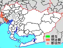 Map showing original extent of Kaisei District in Aichi Prefecture: