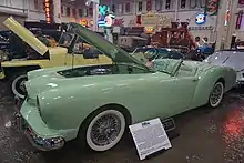 As Kaiser exited the US consumer car market in 1955 it still had a number of Darrins in storage in its remaining facilities.[4] Howard Darrin collected as many of them as he could and, along with the 50 write-offs that he had brought from the Toledo plant, offered them for sale from his Hollywood showroom.[4] He retrofitted the engines of several cars with McCulloch superchargers and multiple carburetors to improve their performance. He replaced the powerplants of six cars with V-8 engines, rated at 305 bhp, used by General Motors for its Cadillac Eldorado.[6][7] Darrin sold the latter as Kaiser-Darrin Specials at $4350 each.[12]