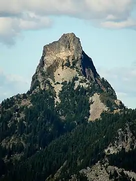 Kaleetan Peak is a prominent 6,259-foot (1,908-metre) mountain summit located in King County of Washington state. It's part of the Cascade Range and is within the Alpine Lakes Wilderness.[1] Kaleetan Peak is situated four miles northwest of Snoqualmie Pass on land managed by Mount Baker-Snoqualmie National Forest. It's immediately west of Melakwa Pass and Chair Peak, and north of Melakwa Lake. Precipitation runoff on the mountain drains into tributaries of the Snoqualmie River. The nearest higher peak is Snoqualmie Mountain, 2.89 miles (4.65 km) to the east.[1] The mountain's name "Kaleetan" derives from Chinook Jargon which means "arrow".[3]