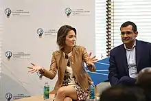 Kamahl, and Bloomberg's Emily Chang hosting a session at the Global Entrepreneurship Summit 2016, Palo Alto