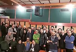 Kambiz Roshanravan's professional activity during this period can be divided into three parts: playing, teaching and composing.[25] In addition to teaching, he continued to expand his activities by playing in concerts, collaborating with the National Television Orchestra of Iran, the Saba Orchestra led by Hossein Dehlavi, and other music groups.[26] He also started composing along with his other activities and performed some of his compositions in the same concerts. In 1974, at the request of the Institute for the Intellectual Development of Children and Young Adults, He released his first works in the form of an album with the names: Blue-eyed Boy, Atal Matal Tutuleh and Music based on the poems of Abu Sa'id Abu'l-Khayr.[27] In the same year, he entered the world of cinema by composing the first soundtrack for the short film Passenger, made by Abbas Kiarostami.[28] In 1975, he wrote, prepared, supervised, performed and published ten phonograph disc records of Radif's sung by Mohammad Reza Shajarian and famous traditional musicians of that time, based on the row of Musa Maroofi.[29][30][31] He also collaborated with other filmmakers in 1975 and 1976, including Nafiseh Riahi (Purple Pencil), Amir Naderi (elegy) and Khosrow Haritash (Kingdom), and was able to establish himself as a composer.[32]
