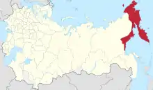 By the law of June 30, 1909, the Kamchatka Oblast was created for the third time. The Oblast included Petropavlovsk, Okhotsk, Gizhiginsky, Anadyr Uyezds and the Commander Islands, separated from the Primorskaya Oblast. At the same time, in the territory of Chukotka (part of the Anadyr Uyezd) the Chukotka Uyezd was formed. In 1922, the Kamchatka Oblast was transformed into the Kamchatka Governorate.[1]