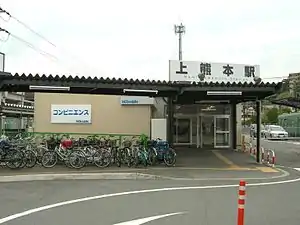 Kami-Kumamoto Station (上熊本駅, Kami-Kumamoto-eki) is a railway station in Nishi-ku, Kumamoto, Japan. It is on the Kagoshima Main Line of JR Kyushu and the Kikuchi Line of Kumamoto Electric Railway. In front of the station is a tram stop of the tram operated by Kumamoto City Transportation Bureau named Kami-Kumamoto-Ekimae Station.