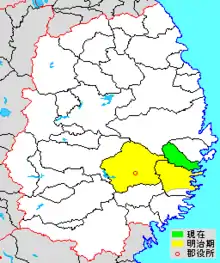 colored area=original extent in Meiji period; green=present area