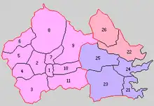 Blue=Kamaishi City (21. Kamaishi; 23. Kashi; 24. Unosumai; 25. Kurihashi)