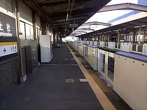 Kamiyashiro Station (上社駅, Kamiyashiro-eki) is an above ground metro station located in Meitō-ku, Nagoya, Aichi Prefecture, Japan operated by the Nagoya Municipal Subway's Higashiyama Line.[1] It is located 18.6 rail kilometers from the terminus of the Higashiyama Line at Takabata Station. This station provides access to Nagoya University of Arts and Sciences.