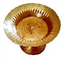 Brass and Bell Metal products of Kamrup are famous for their beauty and strength of form and utility. Brass is an important cottage industry, with highest concentration in Hajo, while Sarthebari is well known for its bell metal craft.[1] The principal items of brass are the kalah (water pot), sarai (a platter or tray mounted on a base), kahi (dish), bati (bowl), lota (water pot with a long neck) and tal (cymbals). Gold, silver and copper too have formed part of traditional metalcraft in Kamrup, and the State Museum in Guwahati has a rich collection of items made of these metals. Gold is generally used in ornaments.[2]