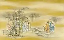 Kanō Tanshin (Morimasa) (狩野 探信, 1653–1718) was a Japanese painter. He was the son of Kanō Tan'yū by his second wife and led the Kajibashi branch of the Kanō school after 1674. Stylistically, he was known for his Tosa-like approach (competing with the Tosa school), but more notably, for his slight departure from the imitative style of Kanō school masters. This departure became a significant point of criticism in the rebellious anti-Kanō school movement of the late Edo period.[1] Parallel anti-Kanō school artist Hanabusa Itchō commended Tanshin for his "rare talent," derived from his ability to use nature as a model.[2] Itchō asserted that Tanshin became a true artist by capturing the spirit of the bamboo to convey an idea.[2]