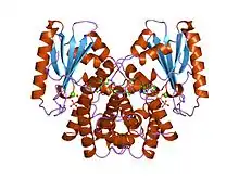 In molecular biology, kanamycin nucleotidyltransferase EC 2.7.7.- (KNTase) is an enzyme which is involved in conferring resistance to aminoglycoside antibiotics. It catalyses the transfer of a nucleoside monophosphate group from a nucleotide to kanamycin. This enzyme is dimeric with each subunit being composed of two domains. The C-terminal domain contains five alpha helices, four of which are organised into an up-and-down alpha helical bundle. Residues found in this domain may contribute to this enzyme's active site.[1]