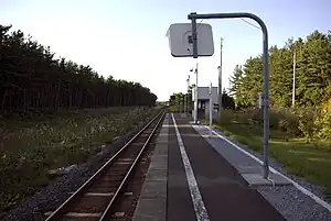 The station has one ground-level side platform serving a single bidirectional track. The station has no station building, but only a small rain shelter for passengers on the platform. The station is unattended.