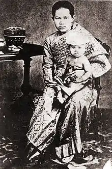 Her mother was Queen Sunanda Kumariratana, Queen Consort, who was also a half-sister and cousin of King Chulalongkorn. She drowned with her mother and her unborn sibling when the royal boat capsized while on the way to the Bang Pa-In Royal Palace. It is a common myth that commoners were unable to touch the queen on pain of death, preventing the rescue of the princess and her mother; this is false. The King's diary records that boatmen dived into the water, pulled the queen and her daughter from the entangling curtains, and carried them to another boat, where attendants worked in vain to resuscitate them.[1]