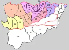 The southern part of the city of Takasaki and all of the city of Tomioka were formerly part of the district.