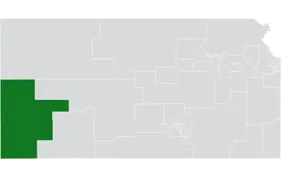 The district is located entirely within Kansas's 1st congressional district, and overlaps with the 115th, 117th, 118th, 122nd, 123rd, and 124th districts of the Kansas House of Representatives.[4] It borders the states of Oklahoma and Colorado.[1]