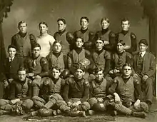 In its earliest years, the program had a different coach every year—generally, a former college football player who had just graduated from college. Often, the coaches also played with the team during the games.[8] Some of the coaches during this era include Fay Moulton (1900), who went on to win Olympic medals as a sprinter; Wade Moore (1901), who later was a successful minor league baseball manager; and Cyrus E. Dietz (1902), who became a justice of the Illinois Supreme Court. The pattern changed when Mike Ahearn became the first long-term coach in 1905. Ahearn coached for six seasons, leading the team to winning records each year, and concluding in the 1910 season with a 10–1 mark. Ahearn also won two conference championships in the Kansas Intercollegiate Athletic Association, in 1909 and 1910.[10] Ahearn was followed by Guy Lowman, who led Kansas State to another conference championship in 1912.[10][7][11][12]