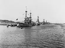 USN battleship line at anchor at the Mare Island Navy Yard in California, 1920