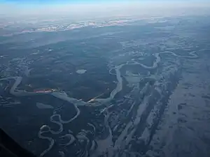 ![]() Confluence of the Kantishna River (bottom left) with the Tanana River | |