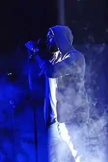 West's seventh studio album, The Life of Pablo (2016), made history by becoming the first album to top the Billboard 200, predominantly from streaming, while also having the second-highest total of first-week streams for an album.[12] In June 2018, West released both his eighth studio album, Ye,[13] and his second collaborative album, Kids See Ghosts (with Kid Cudi).[14] His ninth studio album, Jesus Is King (2019), became West's first to top the Top Christian Albums, and Top Gospel Albums charts.[15][16] His tenth solo studio album, Donda (2021), recorded the second-biggest first week performance in Spotify's history,[17] in addition to equalling the record for most No. 1 debuts in a row on the Billboard 200, with Eminem (10).[18] Donda 2 was released in February 2022 via the Stem Player.