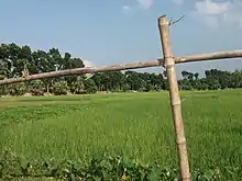 Historically home to Shishupala,[12] the ruins of the ancient capital and reservoir can still be found today. Kapasia is filled with numerous medieval forts such as the Ekdala Fort, Dardaria Fort, Tok Fort and the Karnapur Fort. Out of the upazila's 594 mosques, some notable one include the Sultanpur-Dargapara Shahi Jame Masjid in Tok.[13] The Raniganj Neelkuthi (indigo-house), dating back to the 1800s, and the Dak Bungalow of Lakhpur are both examples of colonial-era architecture. The Joradighi (a joint pair of reservoirs), the Dhadarchar (Shitalakshya-Brahmaputra confluence), Baniar Beel, Nail Beel, Machha Beel, Buri Beel, Suti canal and the Kamra EcoPark are popular natural tourist sites. Other tourist sites include the Faqir Majnu Shah Bridge, Angona Amusement Centre and the home of Tajuddin Ahmad, first Prime Minister of Bangladesh, in Durdaria.[1]