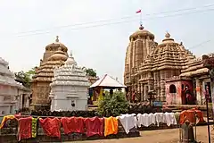 The dominant feature of the temple is the 60 foot high temple and its adjacent pond, surrounded by stone steps. The temple is a satellite of the main temple in Bhubaneswar, the Lingaraj temple. Both these temples, like other temples in India are centres of social, political, and educational activities. Until the middle of the 20th century, the temple dominated the economic, political and ritual life of the place.[1] The temple was built during 14th Century A.D. during Gajapati rule of Kapilendra Deva. Inscription of Kapilendra deva and other architectural sculptural fragments suggest the original temple could be earlier than 11th Century A.D.