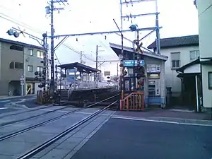 Karahashimae Station is a station of the Ishiyama Sakamoto Line, and is 0.7 kilometers from the terminus of the line at Ishiyamadera.