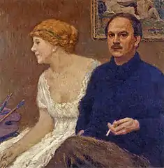 The following years were mostly devoted to small orders, but he returned to large decorative paintings in 1899, when he collaborated with Jan Preisler on panels for the pavilion of the Czech Chamber of Commerce at the upcoming Exposition Universelle in Paris. He worked with Preisler again, at the Central Hotel in Prague, then with Jaroslav in the meeting hall at the Italian Court in Kutná Hora (1901). During this time, he became an active member of the Mánes Union of Fine Arts. In 1902, he organized an exhibition for them in Paris and designed the posters.[1]
