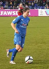 During the 2012 season, Carney started in all 14 matches and scored 3 goals.[17] Birmingham City finished in second place with a 7–2–5 record.[25] She scored the winning goal and was Player of the Match in the 2012 FA Women's Cup Final.[26] Due to national team obligations,[27] Carney competed in six matches for Birmingham City during the 2013 season.[17] The club finished in fourth place with a 5–6–3 record.[28]