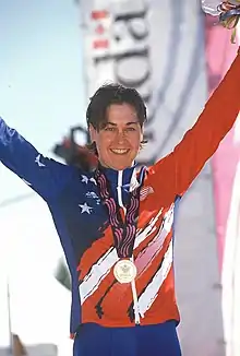 Karen Dunne (born December 30, 1967, in Detroit, Michigan) is a retired female professional cyclist from the United States.[1] She is best known for winning the gold medal at the women's individual road race at the 1999 Pan American Games in Winnipeg, Manitoba, Canada. She also won 11 U.S. National Championships: 3 Elite (Points race, Criterium, Kilometer Time Trial), 3 Collegiate (Criterium, 500 Meter Time Trial, Track Omnium), and 5 Mixed Tandem (Pursuit, 2 x Kilometer Time Trial, 2 x Match Sprints). Her cycling career began while attending Indiana University in Bloomington where she won the 1991 Women's Little 500.