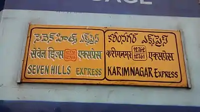• Tirupati–Karimnagar Superfast Express (12761) (Wed, Sat)