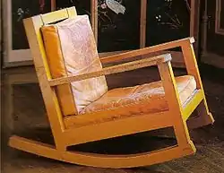 Karin acted as a sounding-board and critic for Carl's work, in addition to being his primary model. With children and a large house to manage, she channelled her own artistic impulses into design. She designed and wove a large amount of the textiles used in the house, embroidered, and designed clothes for herself and the children and furniture which was created by a local carpenter.[3] For example, the pinafores worn by her and other women who worked at Sundborn, known as karinförkläde in Swedish, were a practical design by her. The style in which the house was decorated and furnished to Karin's designs, depicted in Carl's paintings, created a new, recognisably Swedish style:[2][4][5] "In total contrast to the prevailing style of dark heavy furnishings, its bright interiors incorporated an innovative blend of Swedish folk design and fin-de-siècle influences, including Japonisme and Arts and Crafts ideas from Britain."[6] In the "Swedish room" with which she replaced the little used drawing room, she removed curtains and placed furniture along the walls around a raised dais, creating a room within a room that was much used by the family, as shown in Carl's paintings, with a sofa in a corner for naps, shown in Lathörnet (Lazy Nook).[4] Her textile designs and colours were also new: "Pre-modern in character they introduced a new abstract style in tapestry. Her bold compositions were executed in vibrant colours; her embroidery frequently used stylised plants. In black and white linen she reinterpreted Japanese motifs."[7] She is buried in Sundborn cemetery.[8]