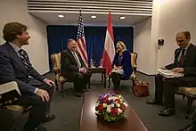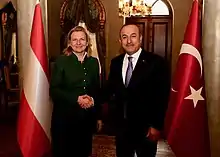 - ↑ "A bow or a curtsey? Austrian minister's gesture to Putin sparks furor". Reuters. 21 August 2018. Retrieved 22 February 2022.