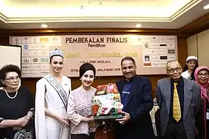 Karina crowned together with Puteri Indonesia; Bunga Jelitha Ibrani of Jakarta Special Capital Region 5, Puteri Indonesia Lingkungan; Kevin Lilliana Junaedy of West Java, and Puteri Indonesia Perdamaian; Dea Goesti Rizkita Koswara of Central Java.[48][49][50]