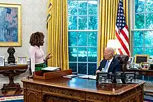 - ↑ Swasey, Benjamin (November 29, 2020). "Biden Names All-Female White House Communications Team; Will Tap Tanden For OMB". NPR. Archived from the original on May 27, 2021. Retrieved May 27, 2021.
