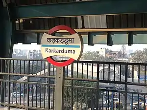 The Karkarduma or Karkardooma metro station is an interchange station located on both the Blue Line and the Pink Line of Delhi Metro that was opened on 6 January 2010.[1][2] While the Blue Line station is at a height of 14.5 m, the Pink Line station, part of the Majilis Park-Shiv Vihar corridor of the Phase III of Delhi Metro, is the second highest station of the Delhi Metro network with a platform height of 20m from ground level.[3]