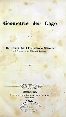 The book Geometrie der Lage (1847) was a landmark in projective geometry. As Burau (1976) wrote: