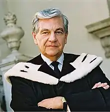 Korinek's promotion to president of the Constitutional Court was part of an attempt by then-Chancellor Wolfgang Schüssel to move the court to the right.[27] His outspoken conservatism and the circumstances of his promotion nonwithstanding, Korinek quickly acquired a reputation for integrity and non-partisan jurisprudence; he came to be widely respected across party lines.[23][20][28] During Korinek's tenure as its president, the Constitutional Court overturned several key pieces of Schüssel's legislative agenda. Also during Korinek's presidency, the court sided with Slovenian minority right activists in the Ortstafelstreit, a long-running dispute about Slovenian language rights that Jörg Haider's Freedom Party had been using to stoke populist resentment. The decision, easily the most controversial in the institution's history, earned Korinek Haider's and the Freedom Party's lasting enmity.[3][17][29]
