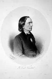 Karl Weinhold was born in Reichenbach, Prussia on 26 October 1823. From 1842 he studied at the universities of Breslau and Berlin, obtaining his habilitation at Halle in 1847. In 1850 he became a professor of German language and literature at the University of Krakow. Afterwards, he taught as a professor at the universities of Graz (1851–61), Kiel (1861–75), Breslau (1876–89) and Berlin (from 1889). On three separate occasions he served as university rector; 1870–72 at Kiel, 1879/80 at Breslau and 1893/94 at Berlin.[1][2]