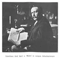 Karl, Prince of Wedel (German: Karl Fürst[lower-alpha 1] von Wedel; 5 February 1842 – 30 December 1919), born Karl Leo Julius Graf[lower-alpha 2] von Wedel, was a Prussian general and diplomat who served as the fourth Imperial Lieutenant (German: Reichsstatthalter) of the Reichsland of Alsace–Lorraine from 27 October 1907 until his resignation on 18 April 1914.[1][2]