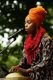 In 2018 as well, she participated in the Festas do Mar, promoted by the Municipal Council of Cascais.[16][17] In 2021, she launched her second album, N'Na, which was presented in festivales such as the Marés de Agosto, Avante! Festival, and at the Cultural Center of Malaposta, during the cycle of the Sons de África no Feminino.[4][15][18]