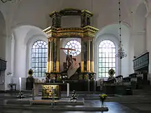 In 1723 the church, together with half of the buildings in the parish, was completely destroyed in a major fire. Rebuilding started almost immediately, under supervision of Göran Josua Adelcrantz, the city architect, who designed a larger, octagonal tower.