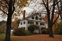 The Kate Douglas Wiggin House, also known as Quillcote, is a historic house on Salmon Falls Road in Hollis, Maine. Built in 1797, the house is significant as the home of the writer Kate Douglas Wiggin from 1905 until her death in 1923, and as a fine example of adaptive architectural change over time. One room of the house features wall murals attributed to Rufus Porter. The house was listed on the National Register of Historic Places in 1977.[1]