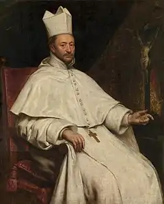 Currently, only two works are attributed to Katharina Pepijn. Both are portraits of abbots of St. Michael's Abbey, Antwerp, executed with oil on canvas in the 1650s. That of Abbot Johannes Chrysostomus vander Sterre was made shortly after his death in 1652. The other is of Abbot Norbertus van Couwerven. Both paintings were originally kept at St. Michael's Abbey.[5] Her portraits are in the style of Rubens and van Dyck.[7]