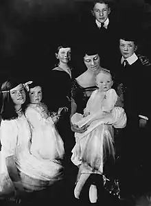 Left to right: daughter Katharine, Marion, Robert, Thomas, and Richard. Her mother is seated at center with daughter Margaret, 1921