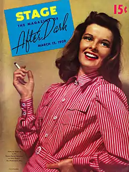 Hepburn left university determined to become an actress.[27] The day after graduating, she traveled to Baltimore to meet Edwin H. Knopf, who ran a successful stock theatre company.[28] Impressed by her eagerness, Knopf cast Hepburn in his current production, The Czarina.[29] She received good reviews for her small role, and the Printed Word described her performance as "arresting".[30] She was given a part in the following week's show, but her second performance was less well received. She was criticized for her shrill voice, and so left Baltimore to study with a voice tutor in New York City.[31]