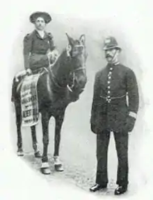In another imaginative protest in October 1908 organised with Maud Joachim Douglas Smith and Joachim held up traffic in the West End by the two riding black bay horses up the Strand, at the same time advertising a suffragette meeting at the Royal Albert Hall. On her death Maud Joachim left Douglas Smith a legacy in her will.[12][13][14]