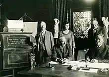 In Bradfield's absence, Butler managed the complex correspondence with the international companies tendering for the project in 1922.[7] She was present at all interviews with the tenderers,[7] and was present at the meeting to open the tenders at noon on 24 January 1924 and named in the photograph (in info box) which appeared widely in the press, alongside Mr. T. B. Cooper (Under-Secretary for Works), Mr. R. T. Ball (Minister for Works and Railways), Bradfield and Mr. Swift (private secretary to the Minister for Works).[14]